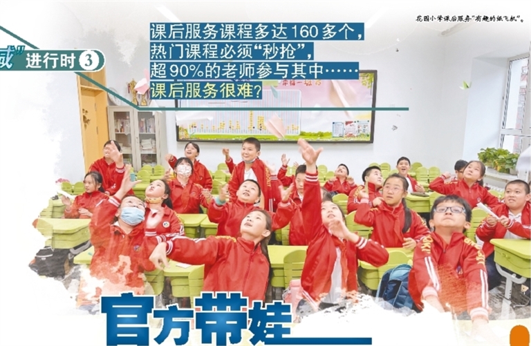 与继红小学“上线”的时间差不多,花园小学也相继推出了一系列丰富多彩的课后服务。花园小学课程中心主任洪君说,该校目前开发的课后服务课程有160多个,两个校区所有老师均参与到课后服务中,并由服务意识向精品意识转变。