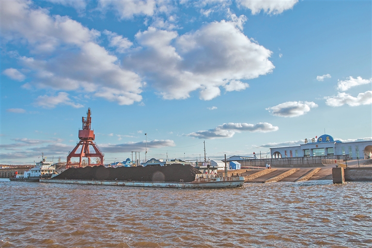 18日下午,一艘满载600余吨俄罗斯进口煤炭的中国籍货船“龙航拖308”“红杉驳6001”船舶由俄罗斯布拉戈维申斯克市到达嘉荫口岸,这是嘉荫口岸闭关近7年以来首次迎来国际航行船舶过货。