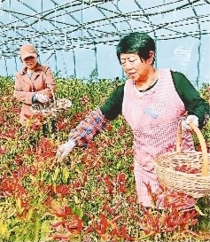 据新建村书记李旭东介绍,在乡镇的支持下,村里和山东一家企业签了订单,统一种植“红箭99”朝天椒。今年,村里共种植146栋大棚的朝天椒,可为全村农户增收70多万元。“统一品种、统一种植、统一销售,订单种植让乡亲们增收致富更有保障。”李旭东说。