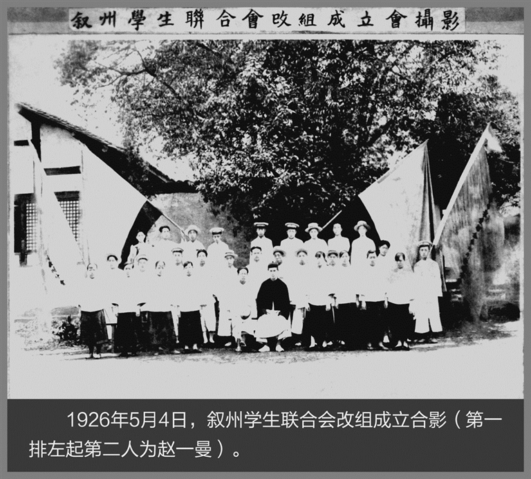 1926年5月4日,叙州学生联合会改组成立合影(第一排左起第二人为赵一曼)。