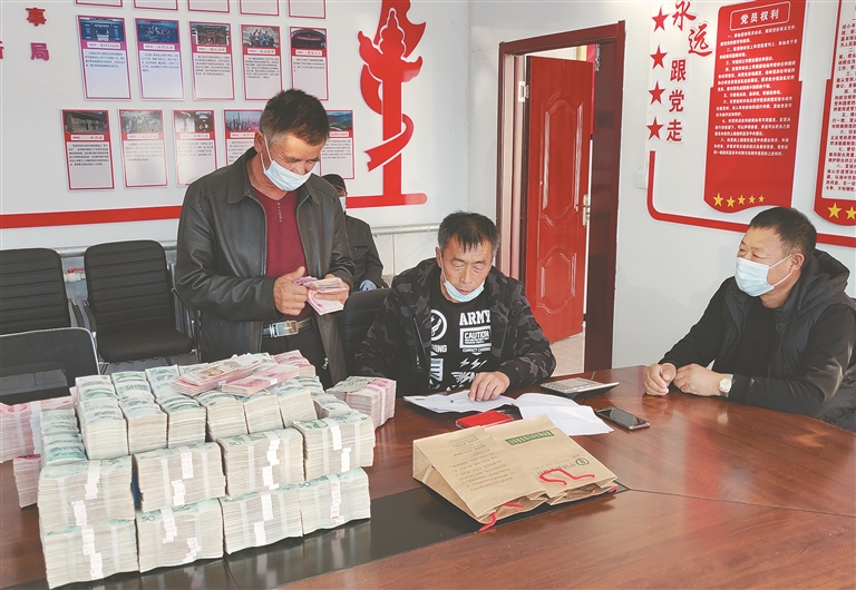 合作社社员陈志勇拿着刚领取的分红,喜悦之情溢于言表。他告诉记者:“今年是我第一年参加合作社土地托管种植,没想到效益这么好,种地施肥都不用管,每亩地比往年外包多收入333元。我在托管之后外出务工又挣了2万多元,这么算下来,今年我家的总收入将超过7万元。”
