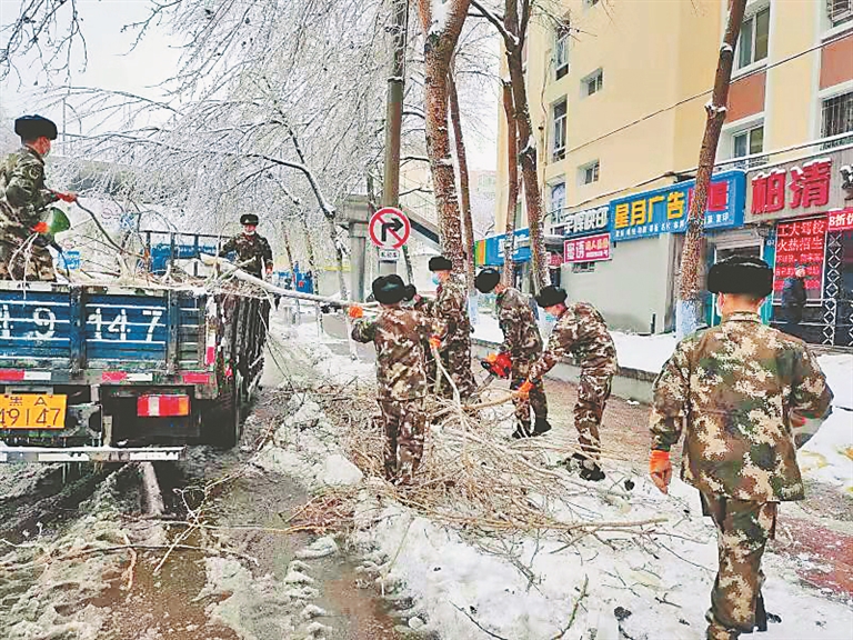 为进一步加大抢险处置力度,哈尔滨市政府协调哈尔滨市武警支队于11月9日出动武警战士210人,全力协助各区园林部门紧急处置各类受损树木,确保民生安全和道路畅通。