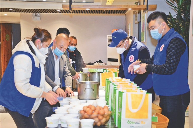 除了保障统一采购的餐食,疫情期间,这家餐厅还免费向卡口送了100多份豆浆,“让一线工作人员暖暖身体”。防控一线的志愿者都可以到这里免费领取盒饭,“老板和我虽然都是外地人,但是在这里十几年了,这里是我们的第二故乡。能为黑河出一点力,辛苦点也是应该的。”柯昌勇说。