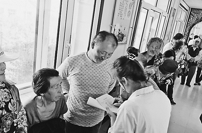 村民排队进行大骨节病筛查。本报资料片