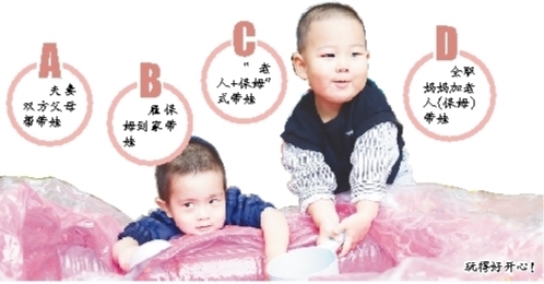 记者调查发现,目前已有的“二孩”家庭,基本上采取四种方式带娃: