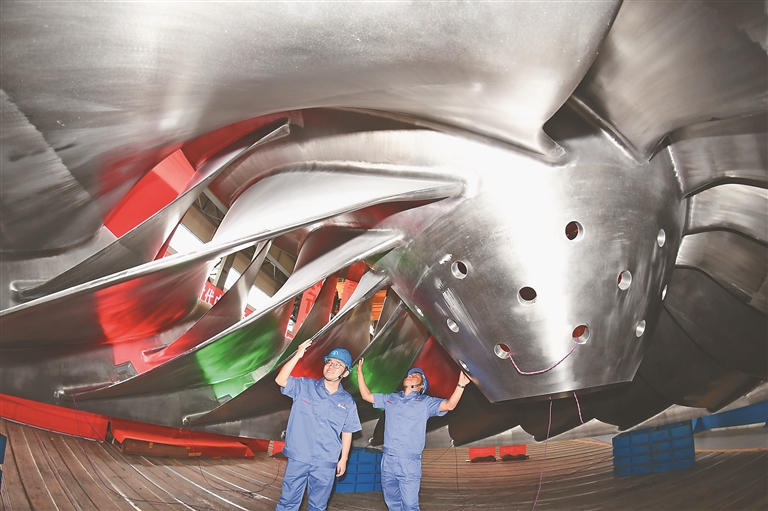 哈电集团研制的世界首台长短叶片1000MW白鹤滩精品转轮。图片由受访单位提供