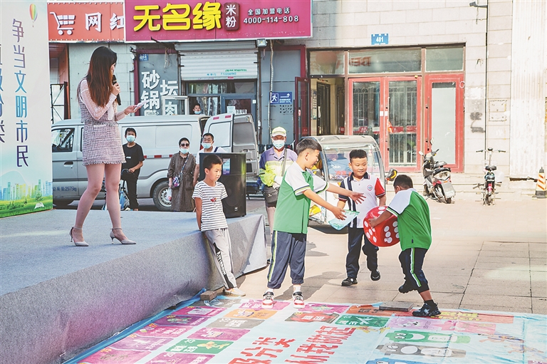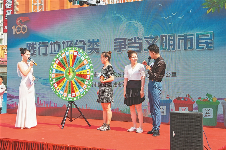垃圾分类飞行棋、垃圾分类幸运大转盘、垃圾分类套圈游戏、垃圾分类主题歌舞表演……今年7月,由哈尔滨市生活垃圾分类领导小组办公室主办的“践行垃圾分类 争做文明市民”系列主题宣传活动相继走进果戈里大街教堂广场、卓展购物中心、古梨园、河政社区、平房公园。载歌载舞、寓教于乐的宣教演出和趣味游戏,让冰城市民“零距离”感受到垃圾分类新风尚。