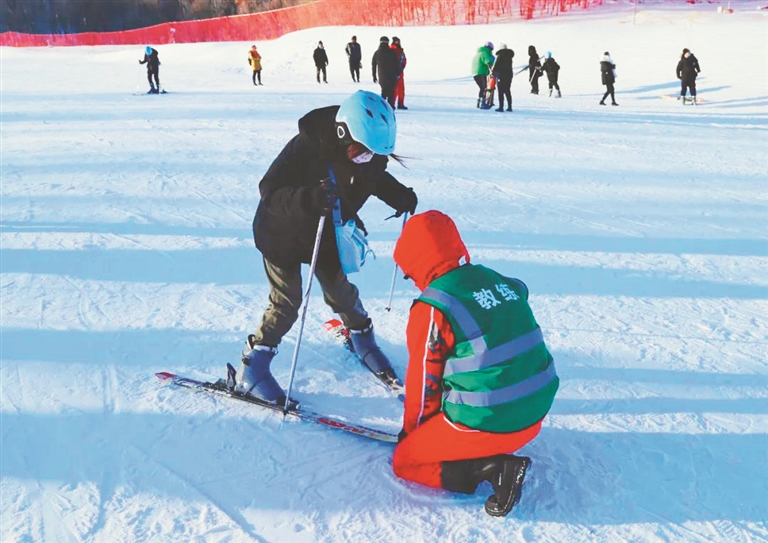 日前,来自双鸭山实验小学的200余名师生前往双鸭山林区青山旅游区滑雪场,共同感受冰雪的魅力。图为教练耐心传授滑雪技巧。李尔豪 李帅男 黑龙江日报全媒体记者马一梅 李健摄