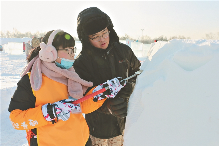 新年伊始,首届哈尔滨太阳岛儿童冰雪季在太阳岛雪博会举行。作为龙江冰雪旅游的新品项目,首届太阳岛儿童冰雪季以“童心筑梦 共塑未来”为主题,以广大青少年为对象,着力打造以“参与、体验、互动”为主要内容的儿童冰雪盛会。 活动现场,小朋友们手执雕刻工具,化身小小“雪雕师”,尽情发挥想象力,感受着雪雕文化的魅力。 刘桂杰 黑龙江日报全媒体记者 郭俊峰摄