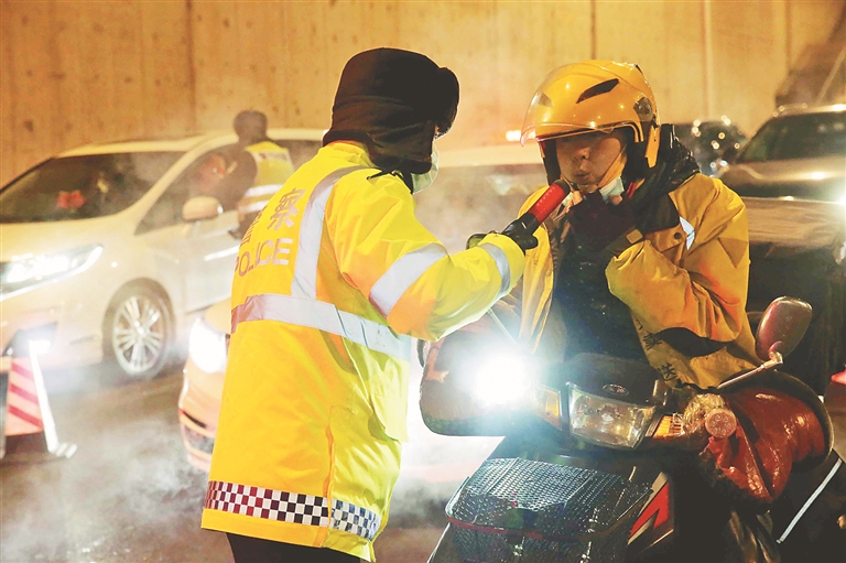 交警夜查。黑龙江日报全媒体记者 李爱民 马智博摄