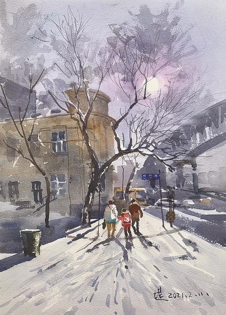王焕堤《新年的阳光》 水彩画 51×36cm