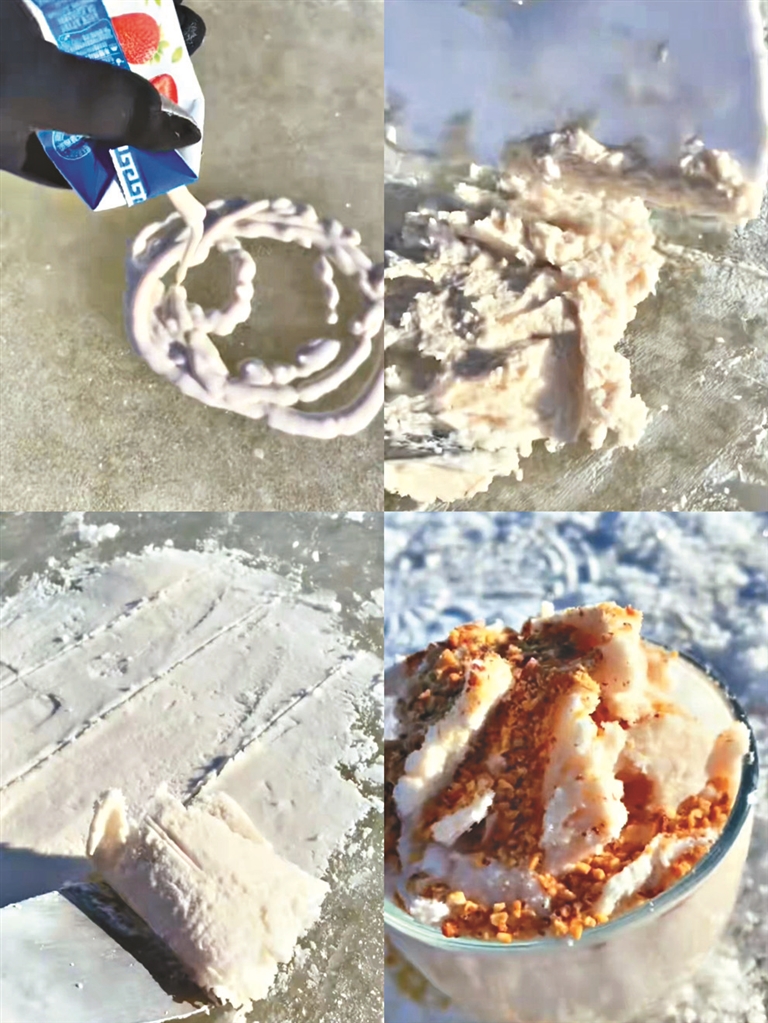 “打出溜滑,堆雪娃,酸菜缸里开白花”,谈起东北的冬,大雪壳子三尺冰,-30℃的凛冽,正如歌曲所唱,打冰尜,欻嘎拉哈,面对白茫茫的大雪,东北人总有特有的娱乐方式消遣。5日迎来小寒,面对冰天雪地的严寒天气,在雪乡泼水成冰的短视频,在抖音、微博等平台风靡。而之前黑河居民在-32℃的低温天气里,在冰面上炒酸奶的视频则早已在网上热传。