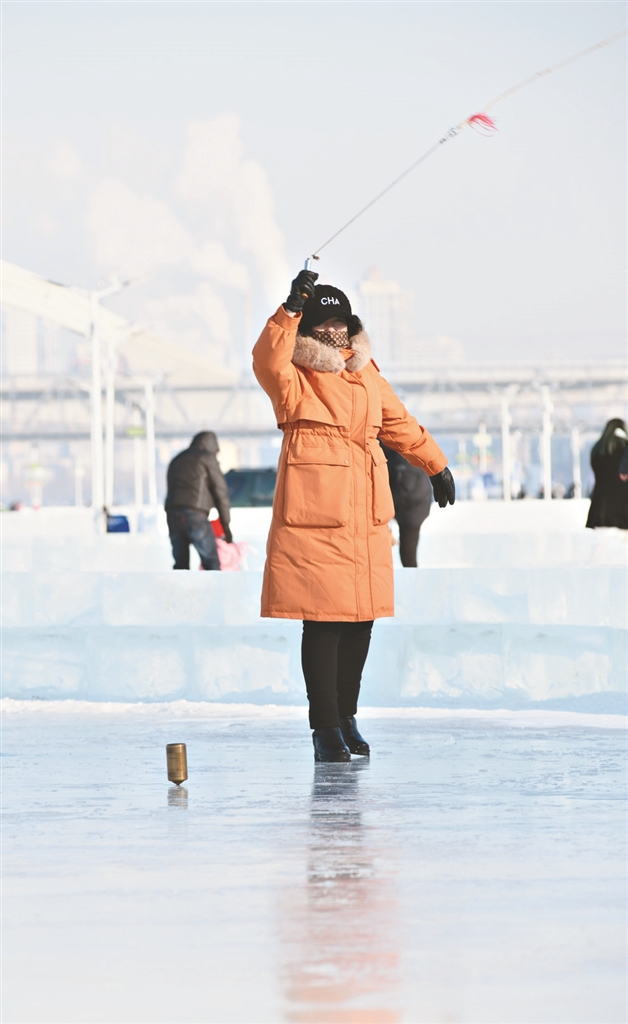 在松花江边,“啪、啪”声不绝于耳——抽“超大”冰尜的人群越来越壮大,使寂静的江畔变得活跃。“抽冰尜绝对是体力活,既强身健体,又丰富生活。”正在抡鞭子的李阿姨乐呵呵地向记者介绍。在东北人眼中,或许这项运动早已融入自己的生活。