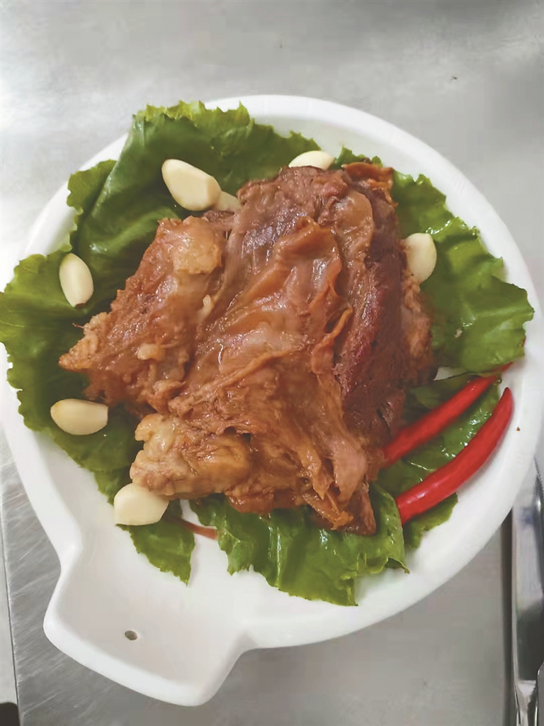 350头肉牛在3万平方米的牛场内被精心照料着,年出栏肉牛达到了120余头。负责人闫玉昌介绍,牛肉的做法五花八门,牛肉蒸饺、牛肋排、清蒸牛脑、卤牛肉、咖喱牛肉还有萝卜炖牛肉……