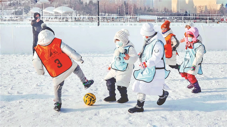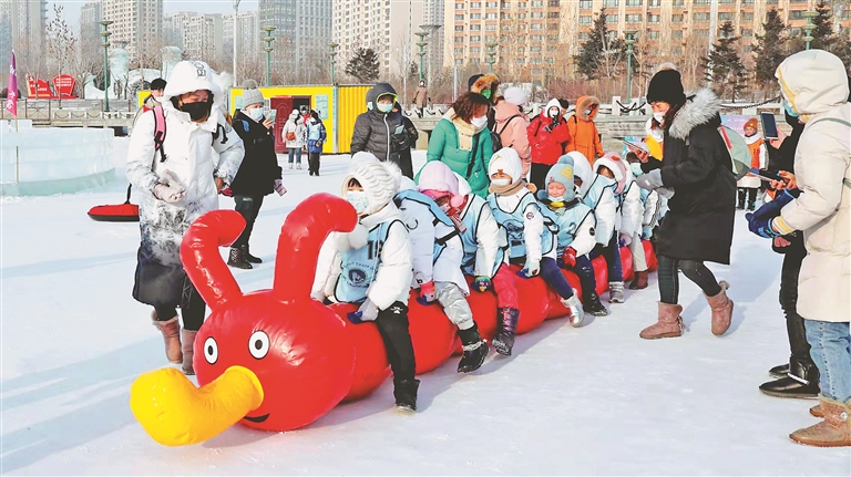 近日,省冰雪亲子运动会在哈尔滨体育公园开幕。共有来自全省各地的近400个家庭参赛,每个参赛家庭队由一名家长带一个孩子组成。在严格做好疫情防控的前提下,每天200个家庭被分成八组,分批有序地参与彩虹伞颠球、雪地袋鼠跳、萌娃传送圈、车轮滚滚、雪地拔河、雪地保龄球、雪地毛毛虫、雪地足球等趣味十足、亲子参与性和互动性强的冰雪体育项目。黑龙江日报全媒体记者 郭俊峰摄