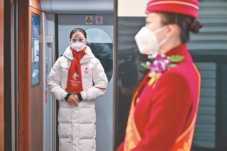 作为京张高铁首发列车长,吕盼是“雪之梦”乘务组的一员,值乘21日北京北站开往太子城站的G8825次列车,“该趟列车内有全球唯一的5G超高清演播室,车厢表面是专门打造的冰雪涂装。”“我们经过了英语、手语、冬奥会知识、国际礼仪常识、业务技能等全方位培训和选拔,将用最好的服务为冬奥助力,为中国喝彩。”她说。
