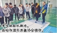 学生体验冰蹴球。 由哈尔滨市冰盘协会提供。
