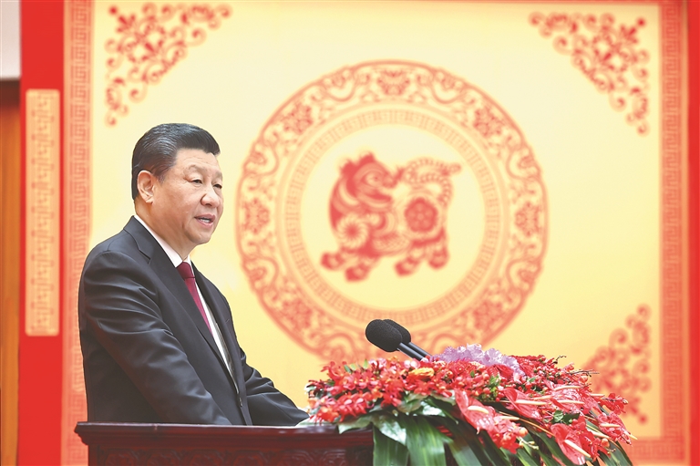 1月30日,中共中央、国务院在北京人民大会堂举行2022年春节团拜会。中共中央总书记、国家主席、中央军委主席习近平发表讲话。新华社记者 鞠鹏摄