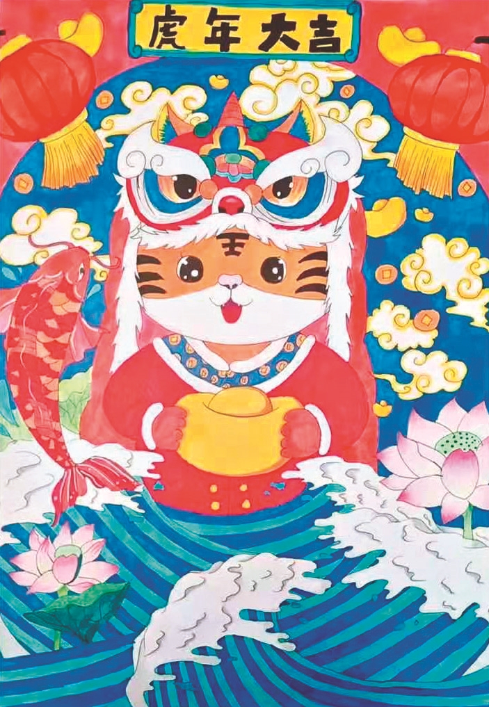 《虎年大吉》 马克笔儿童画 王鹤淼