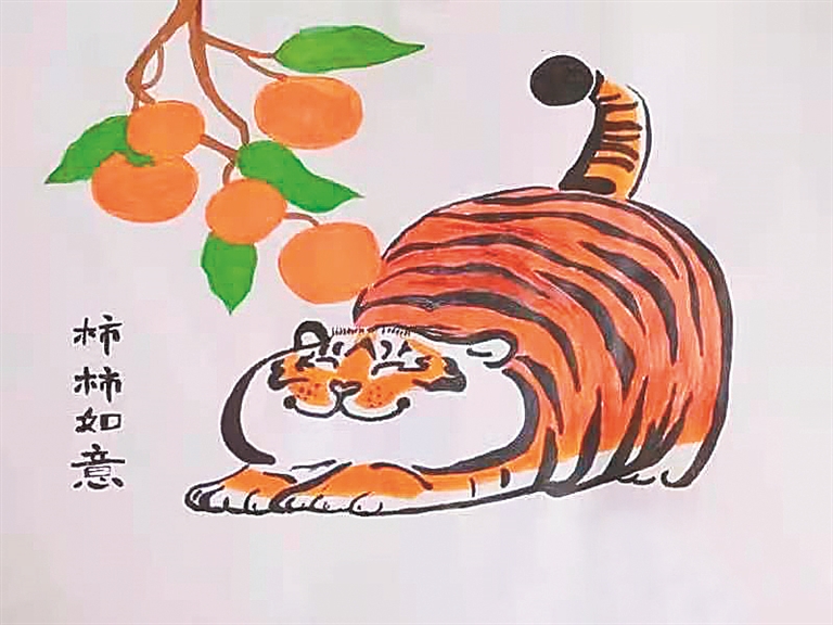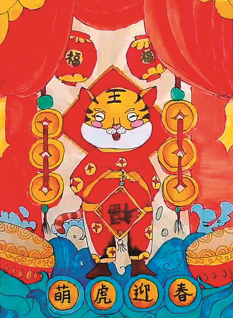 《萌虎迎春》 马克笔儿童画 张佳妮
