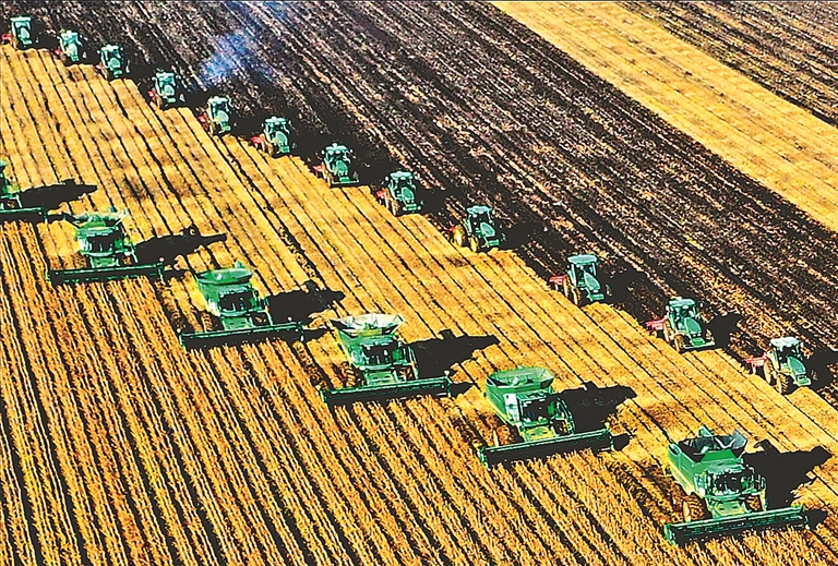 发展现代农业,需要坚持科技强农,截至2021年底,北大荒集团农业科技进步贡献率达77.07%。