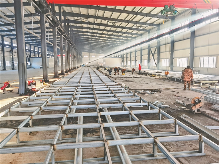 近日,在北大荒集团查哈阳农场有限公司双氧智能浸种催芽车间,工人师傅正在加班加点的组装催芽箱。施工队队长母金辉说:“车间整体轻型门式钢架结构、取暖设备已经全部安装完成,我们正在抢抓时间组装浸催水箱、浸调水箱和排水设备,一定会如期完工,绝不会耽误今年的春耕生产。”