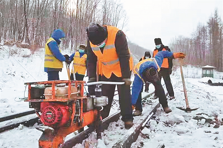 进入冬季,随着气温不断下降,线路冻害进入高发期。孙东伟与工友们利用维修“天窗”时间,通过调整轨距、垫板等作业,对冻害地段做到随变随修,把维修标准控制在5毫米以内,保证了冬季运输安全稳定。为支持供电供暖企业用煤需求,绥芬河铁路口岸日均进口煤炭超5000吨,俄方重载列车加量运行,他们的工作量也随之增大,冒着严寒每天在室外工作七八个小时,用精准的检查数据、合理的整修计划呵护着“骑马线”上的每一根钢轨、每一个道钉和螺丝,守护着国境线的安全。