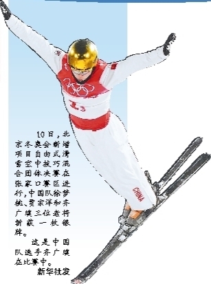 10日,北京冬奥会新增项目自由式滑雪空中技巧混合团体决赛在张家口赛区进行,中国队徐梦桃、贾宗洋和齐广璞三位老将斩获一枚银牌。