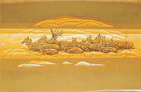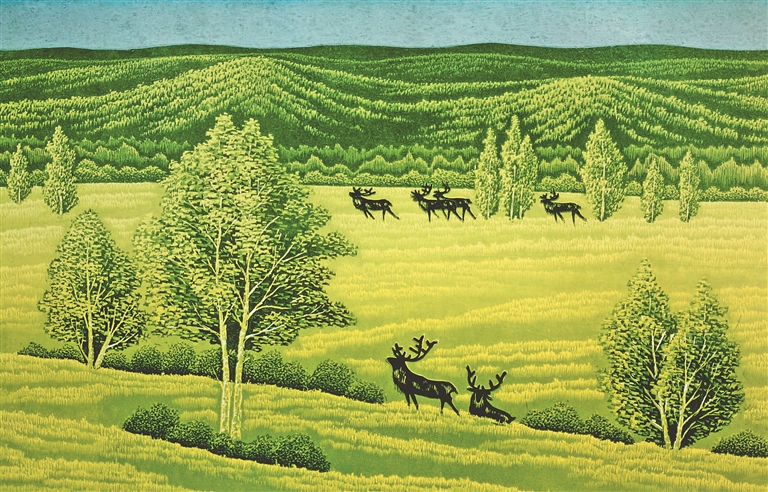 《北方·秋韵之一》(局部) 套色木刻 刘德才
