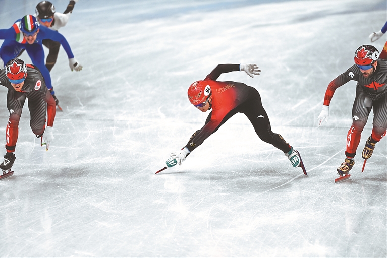 在11日晚举行的短道速滑男子5000米接力半决赛中,由武大靖、任子威、孙龙、李文龙组成的中国队虽然在交接棒时摔倒,后经裁判审议录像,判定中国队受到对手无意干扰,最终成功进入A组决赛。