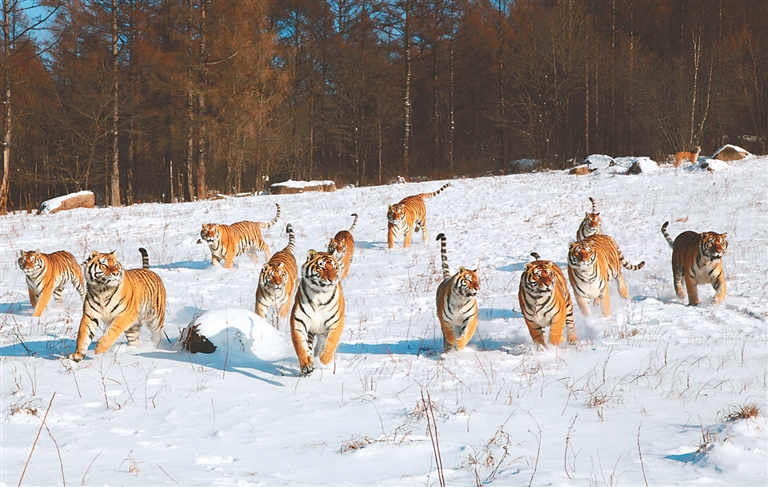 在这片冰天雪地之中,还有非常可爱的动物。在东北虎林园和横道东北虎林园中,雪地“跑酷”的东北虎尽展百兽之王的飒爽雄姿;齐齐哈尔扎龙国家级自然保护区的丹顶鹤,雪地起舞别有风情;亚布力熊猫馆中翻滚嬉闹的佑佑和思嘉萌趣可爱;哈尔滨极地公园的网红“淘学企鹅”,在雪地散步憨态可掬;野生“狍子君”在大兴安岭的林中穿梭,听到声音还会好奇的回头……这些龙江冬日里的小可爱们,活力十足,让人心生喜爱。