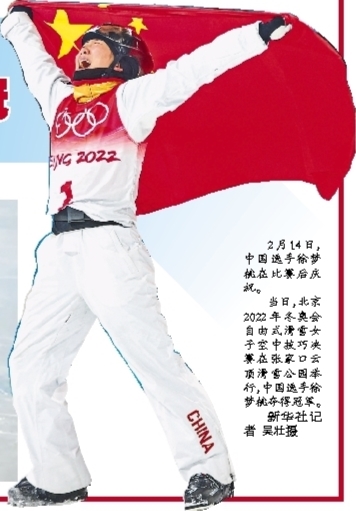 当日,北京2022年冬奥会自由式滑雪女子空中技巧决赛在张家口云顶滑雪公园举行,中国选手徐梦桃夺得冠军。