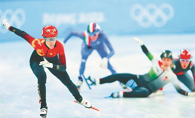 13日,北京冬奥会开赛第9天,范可新、曲春雨、张雨婷、张楚桐四朵金花组成的中国队出战短道速滑女子3000米接力。在紧张激烈的比赛中,姑娘们顽强拼搏、决不放弃。最后一棒的范可新更是在明显落后情况下凭一已之力奋起直追,成功超越对手,帮中国短道速滑队赢得铜牌。