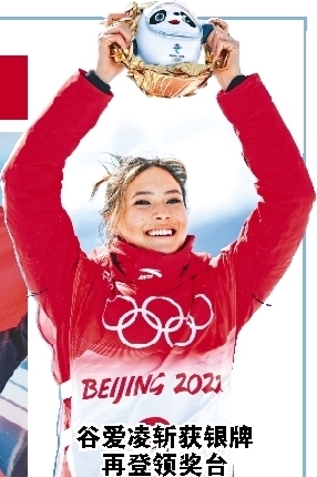 2月15日,谷爱凌在颁发纪念品仪式上。当日,北京2022年冬奥会自由式滑雪女子坡面障碍技巧决赛在张家口云顶滑雪公园举行。中国选手谷爱凌获得银牌。新华社记者 邓华摄