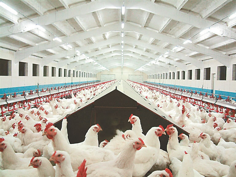 加快推进白羽鸡产业发展。引进山东益生、民和牧业、山东康地恩投资公司,打造“中国最安全的肉鸡产品生产基地”。先后投资18.2亿元,建成了集种鸡繁育、孵化,商品鸡养殖、屠宰加工、饲料加工于一体的全封闭式白羽鸡产业链。目前拥有年存栏种鸡70万套的现代化种鸡场13个、商品鸡场30个、孵化场1个、屠宰场1个、饲料场1个,年孵化、饲养、屠宰能力均达到6000万只,年产饲料30万吨,实现销售收入11亿元。