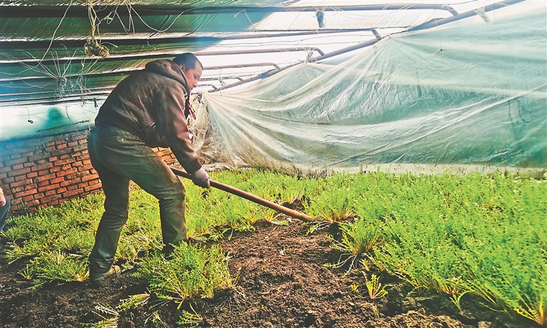 据张显波介绍,随着温室里的叶菜陆续上市,大棚里也开始整地栽苗。相对于烧炉子供暖的温室,大棚被称作冷棚。为确保幼苗不受冻害,大棚下要扣一层中棚,中棚下还有一层低棚。现在,合作社每天用工十几人,多的时候要用几十人。早上7点下地,干到天黑,每小时劳务费7元,还管一顿饭。因为菜棚里的活儿需要人手,附近村屯的许多村民都成了合作社长期雇工。