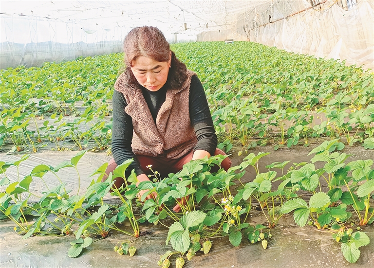 “这两年,我们合作社不断增加投入,建设科技含量更高的智能温室。新建的温室,保温性能和太阳能吸收功能都大幅提升,让消费者尝新、尝鲜的果蔬品种也因此更加丰富。”张显波说,合作社把草莓与生菜、萝卜菜、臭菜等“蘸酱菜”间种,利用温室全部空间,多种出了一茬蔬菜。种植的柿子、黄瓜等蔬菜比正常上市期要早2个多月,香瓜、草莓等水果也提前上市,效益可提高几倍。