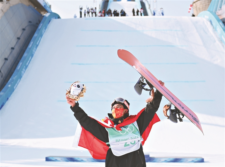 当真正站到“家门口”的冬奥舞台上,这名中国小将敢打敢拼,在实力并不占优势的坡面障碍技巧项目上,“用对待决赛的态度做好每一滑”,最终摘得银牌。几天后,他又在主项大跳台项目上顶住众多世界好手的挑战,提前一轮锁定金牌。
