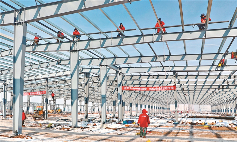 本报讯(陈丹华 王木超 黑龙江日报全媒体记者孙昊)春节过后,依安经济开发区内北纬47绿色有机食品产业项目就已复工建设,全力开展钢构施工。