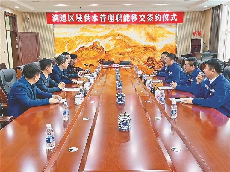 去年12月29日,滴道区域供水管理职能移交签约仪式在滴道区政府举行。自今年1月1日起,鸡西市供水公司全部接收滴道区主城区、滴道矿、大通沟矿区域内的供水管理职能工作,负责区域内居民生活、商业经营和工业生产等全部供水用户的供水。
