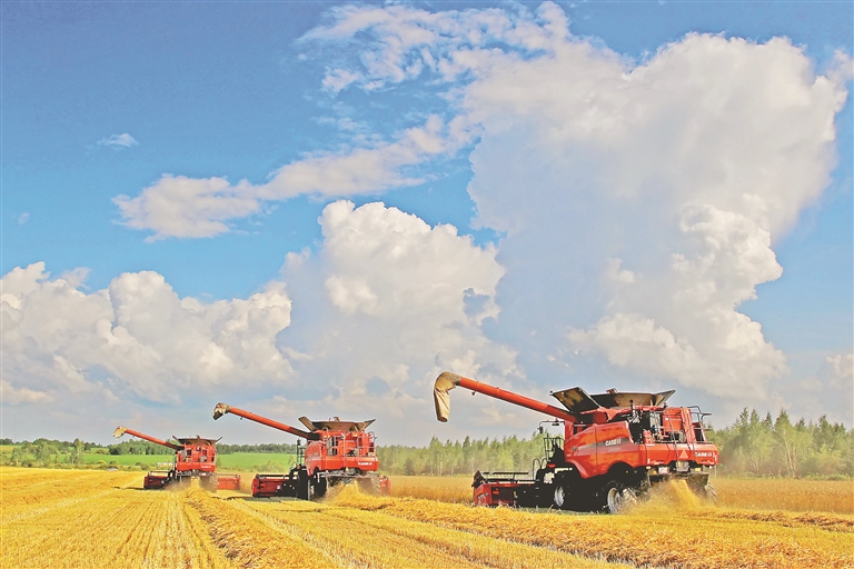 “垦区内集团化运营种子16万吨、农机具210台(套)、农化产品2049吨,协调机车在地方收获、整地面积超过350万亩;开展农业社会化服务面积1080万亩(次),实现玉米亩增产200斤、大豆亩增产33斤。”作为“双控一服务”承载主体的北大荒农服集团,在运行的第一年,销售收入就达34亿元,实现了经济效益、社会效益双丰收。