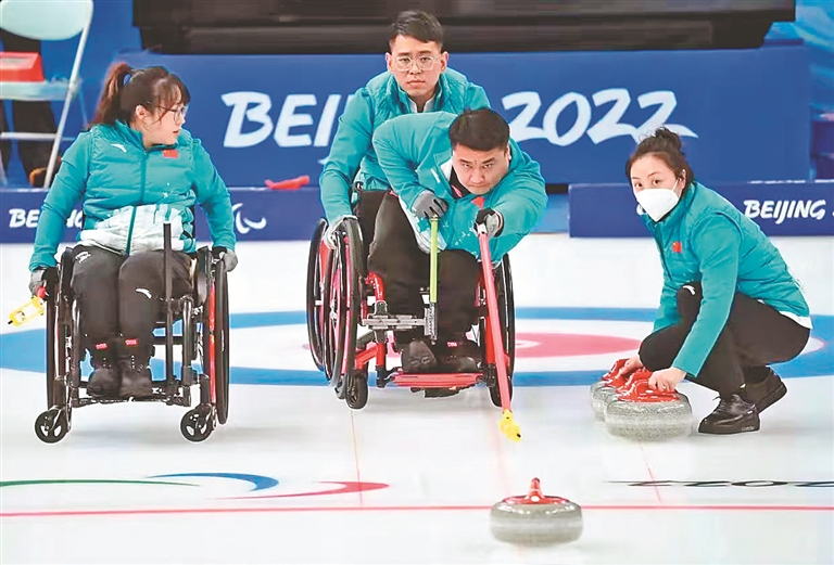 北京冬残奥会的第一天,中国轮椅冰壶队开局不利,先后不敌加拿大队和瑞典队,压力可想而知。之后中国队迅速调整状态。6日,9:3战胜爱沙尼亚队,赢得循环赛首胜。7日,接连战胜韩国队和瑞士队,以三胜两负的战绩与拉脱维亚队并列第三名。11日,中国队对阵加拿大队争夺决赛名额。12日,轮椅冰壶决赛中,中国队在前四局1:2落后瑞典队的情况下改变战术,利用对手失误成功拿到4分。最终,中国轮椅冰壶队8:3战胜瑞典夺得冠军。
