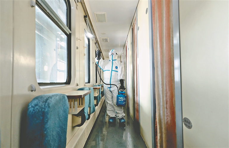 图为给列车消毒。原勇 黑龙江日报全媒体记者 狄婕摄