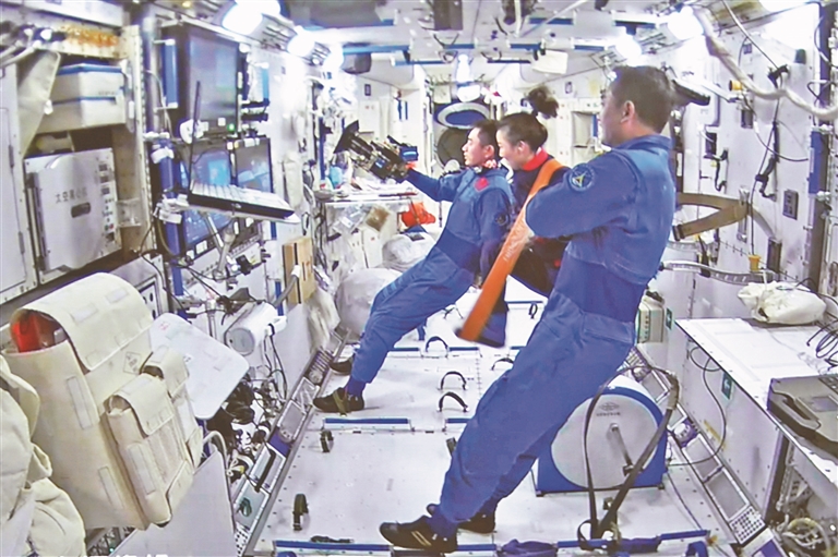 神舟十三号飞行乘组航天员实时监控天舟二号撤离情况。 新华社发