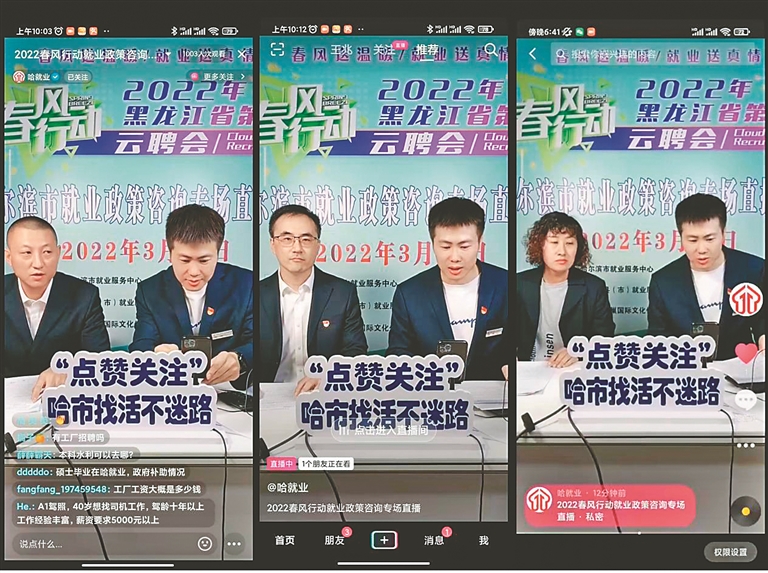 本报讯(李莹 黑龙江日报全媒体记者刘艳)日前,哈尔滨市人社局就业服务中心成功举办了“春风送温暖 就业送真情”暨“就业政策咨询专场”直播活动。活动共有540家企业参会,发布岗位信息18114个,32029人次参与了求职互动,提供政策咨询、职业指导384人次,引导求职者向企业应聘335人次。