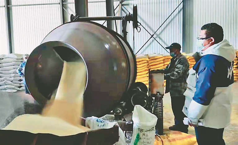 尖山农场有限公司第四管理区拌肥车间正在加工大豆播种肥。张天露摄