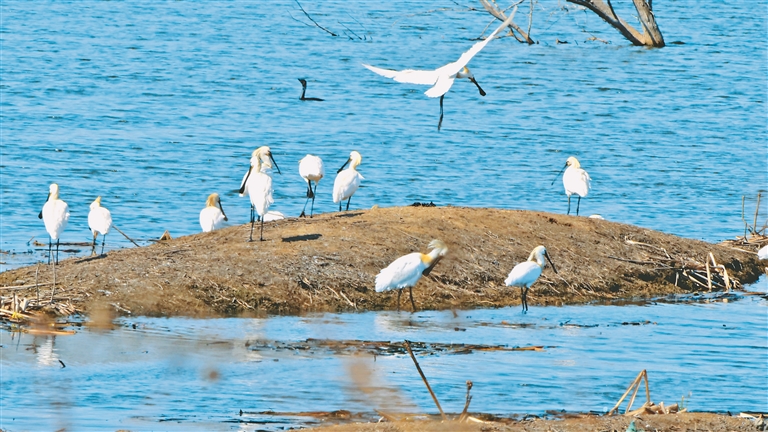 但在此前,百鸟湖曾是“臭名昭著”的氧化塘,经过一系列治理后,氧化塘水质好转,生态环境得到全面恢复,已有89000余只鸟类到这里“安家落户”。