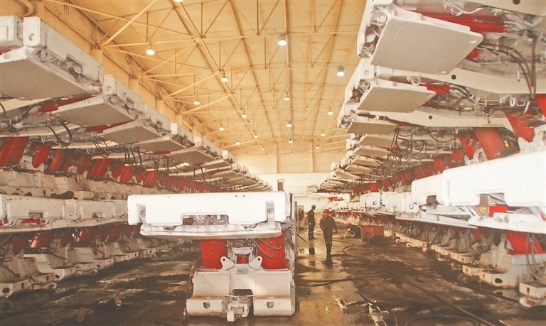 新疆公司黑眼泉矿机修厂检修完毕待出厂液压支架。