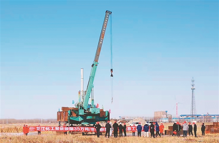 “继2月28日,打下大庆‘油头化尾’新建项目第一桩后,截至3月31日,桩基施工已达5万米,部分地管材料陆续进场。”春日微寒中,大庆高新区计划总投资60亿元的龙江化工聚碳酸酯35万吨/年苯酚丙酮项目现场,工作人员向记者介绍了这个项目的施工情况。