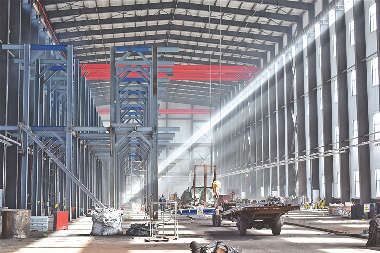 厂区开阔处,20多名工人正对特种变压器外围进行紧张的砌筑作业;包覆造粒车间里,工人们焊接、架梁,忙碌有序……抢工期、抓进度、忙生产,厂区里的春日,因为勤劳奋进的建设者而更添热闹气息。